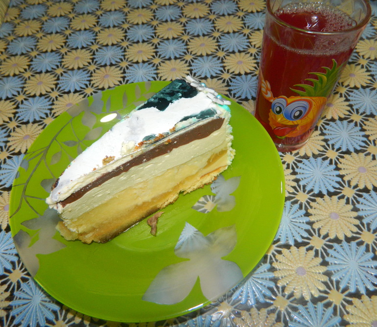 Торты для домашних и друзейМногое получилось лучше, чем раньше, эксперименты удались не все, вес 3,7, суфле(птичье молоко, мусс из белого шоколада, мусс из темного шоколада, лимонное желе).
