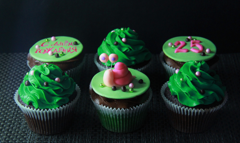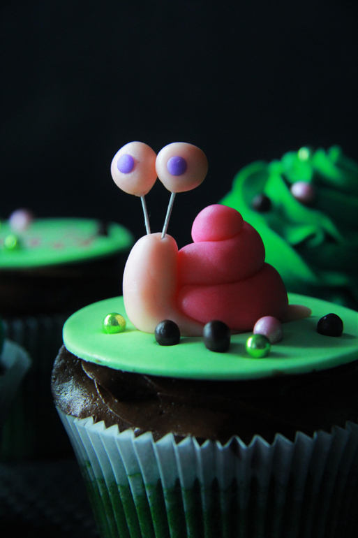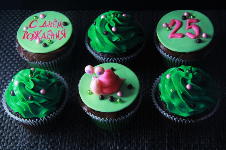 Короче, заказала девочка знакомая вчера в 10 вечера на сегодняшнее утро 6 капкейков. Ну оооочень надо) Ну ладно. Цветовая гамма - изумруд/темно-коричневый. Ок. А потом понеслась.... Надо улитку. Простую. Присылает фото. Ну практически идентичное тому, что получилось.