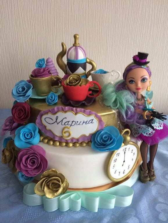 Торты детскиеТортик с евер автер хай. чайная церемония. однажды пропали цветы со всего города. герои преодолев множество преград, возобновили красоту и вновь в городе зацвели необычные цветы. главная героиня Мэдлин Хеттер, дочь безумного шляпника любительница пить чай. вот такая история должна была получиться, которую рассказала заказчица за 4 дня до дня Х.