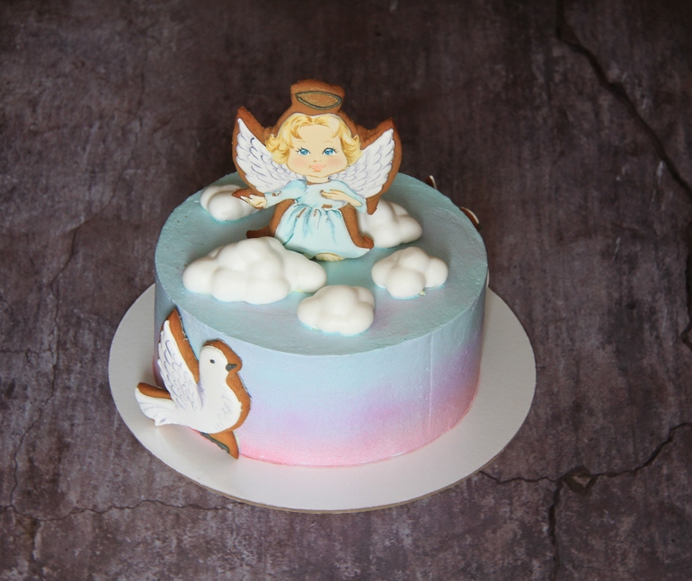Торт на крещение кремовый с пряниками.