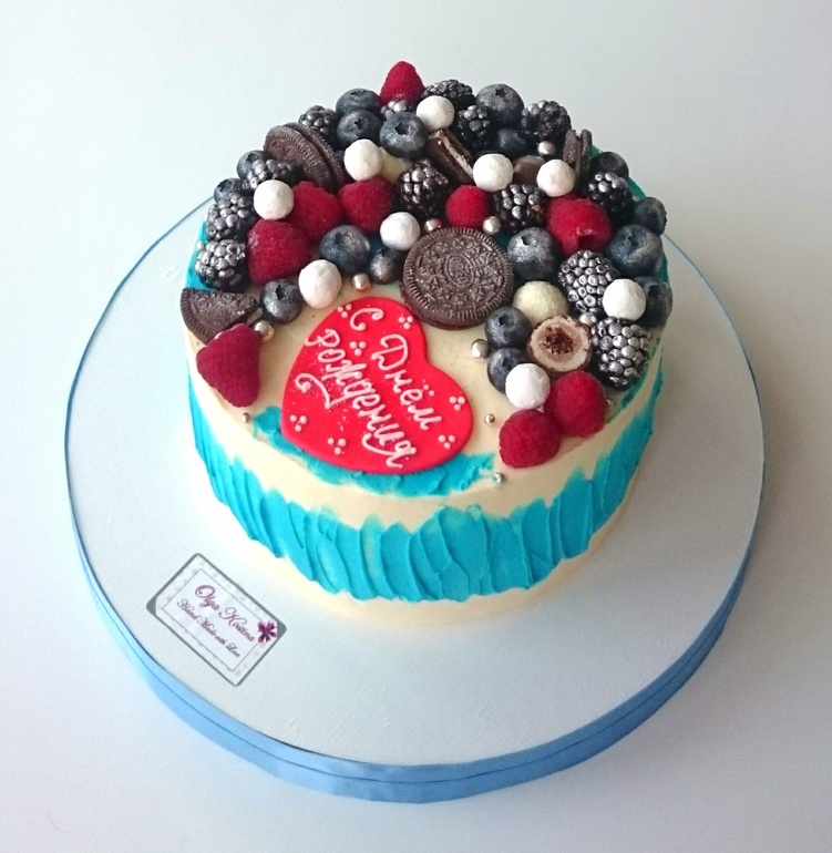Тортик для любимого мужа (не моего) в "зимнем" исполнении со свежими ягодами!