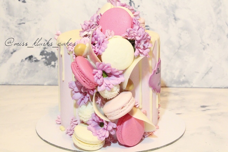 Очень нежненько!Неужели макарон сбоку торта ,стоя торцом,не падает только за счёт глазури,ничем больше не укреплённый?Или его что-то поддерживает?
