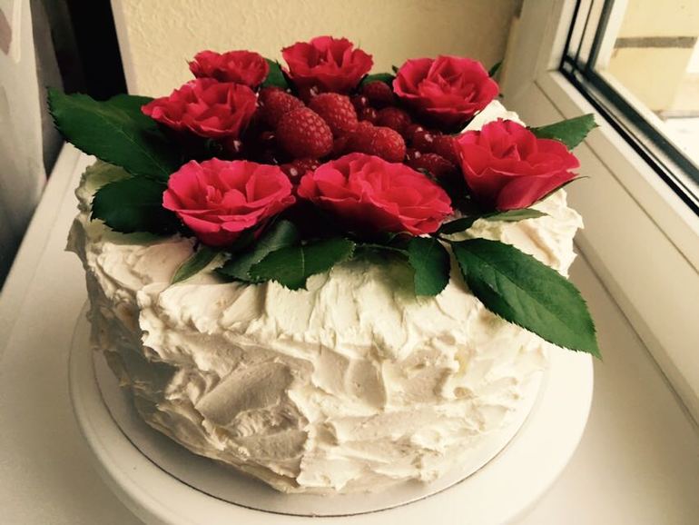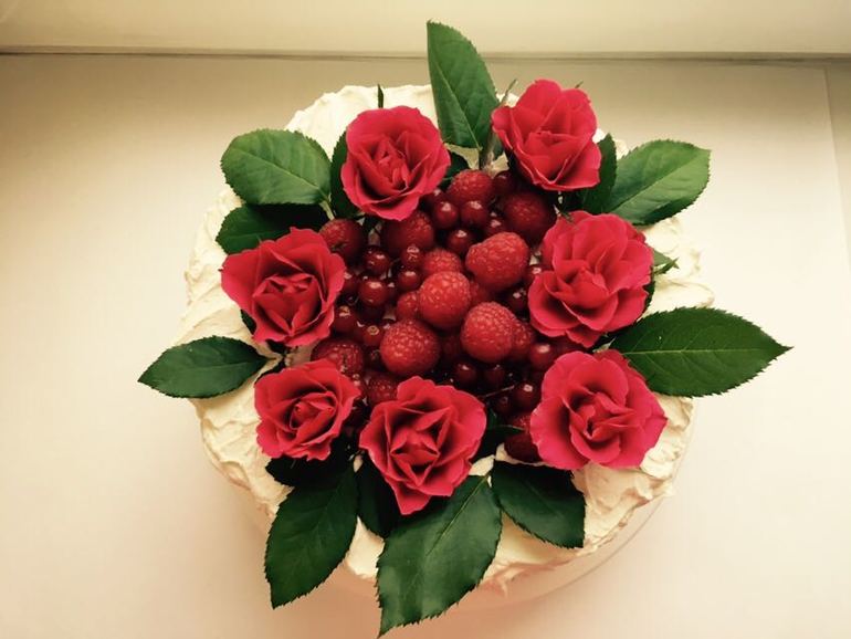Украшение тортов кремом,шоколадом, фруктамиОт любящей дочери маме. Внутри "Молочная девочка", кремом "Дипломат" с пюре из свежей малины. Дизайн такими мазками выбрала сама заказчица. Розы на тортике хорошо помыты и изолированны. Эх, фудфон мне в помощь, конечно. Но пока вот так на подоконнике. При электронном освещении мне совсем фото не нравятся.
