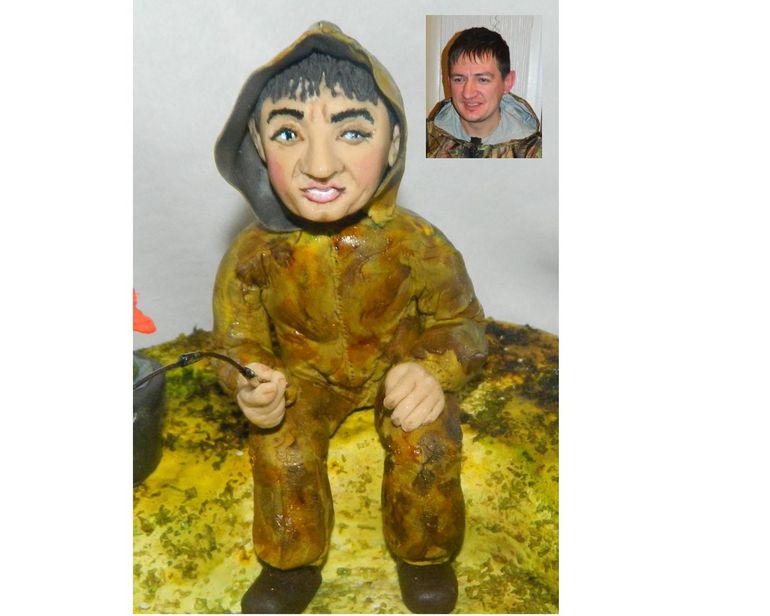 Торты для мужчинОцените, девочки)) Вот и в моей коллекции появился Рыбак). Плюс опробовала портретную лепку. В качестве модели - муж в новоподаренном костюме (теперь-то рыбы в очередь просто обязаны выстроиться). МД+сливочный пломбир+апельсиновое желе, вес 2,6.