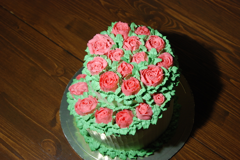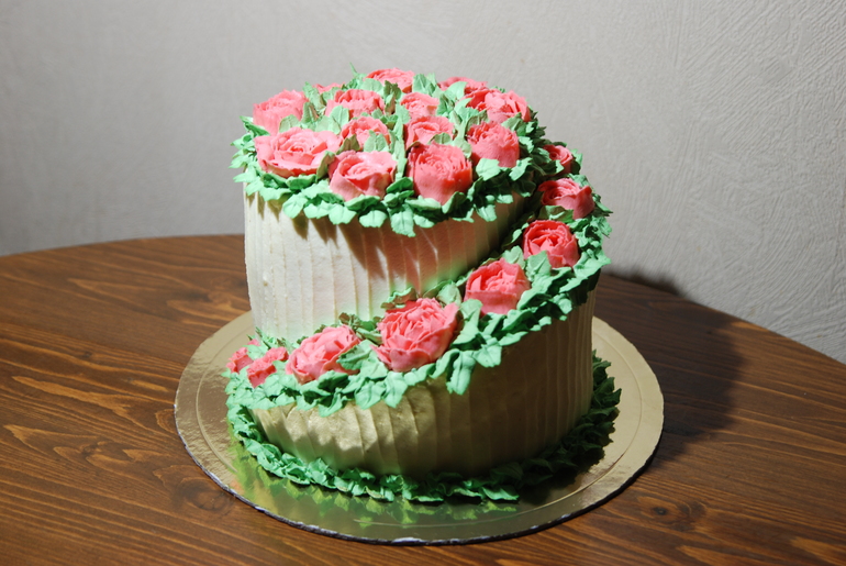 Украшение тортов кремом,шоколадом, фруктамиТорт на юбилей жены генерала ФСБ. По декору пожелания были "чтоб как раньше, с кремовыми розочками". Вроде похоже получилось. Цвет искажен до неприличия, листья зеленее и сочнее. Да, фото - моя боль.
