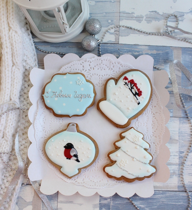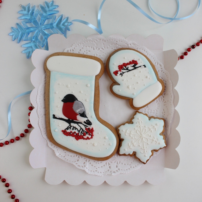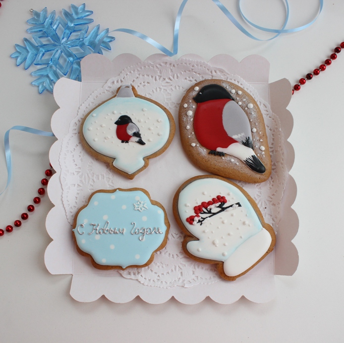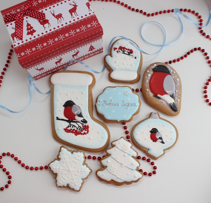 ПряникиНовогодняя коллекция мягких имбирных пряников со снегирями.Далее много фото поштучно и в наборах
