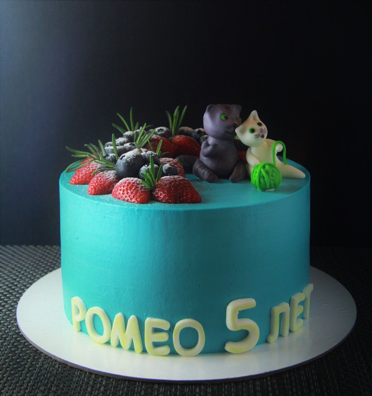 Заказали повтор моего с котятами. Причем, дизайн выбирал сам именинник из моей ленты)))) Вплоть до цвета кошек, торта и отсутствия потеков))))) Ну что, молодец! Я, правда, прифигела слегка от такого количество разных несочетающихся цветов, но хозяин, как говорится, барин. Особенно в 5 лет
