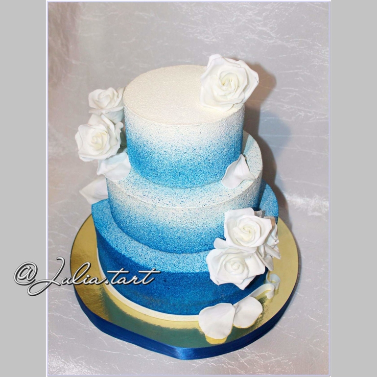 Торты свадебныеДавно не создавала что то новое для себя)) Вот опробовала муссовый трехярусный, покрытый шоковелюром. Цветовая гамма свадьбы насыщенно синий и белый)