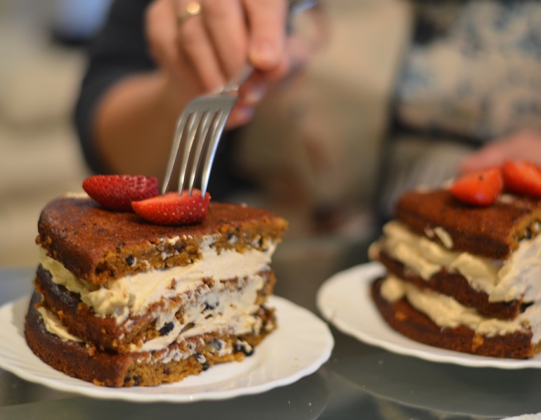 И в конце добавлю разрез морковного тортика с карамельным кремом и черносливом . Делался из остатков одного тоненького коржика) порезала его на 6 треугольничков, смазала остатками крема и вуаля) вкуснятина к чаю готова