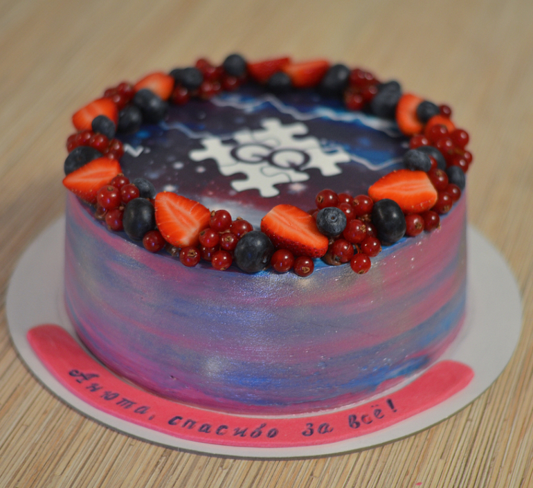 Украшение тортов кремом,шоколадом, фруктамипостоянная клиентка заказала торт на 60 юбилей мамы . Низ красный бархат , верх малиновый пломбир на миндальном дакуазе с хрустящим слоем . Вес почти 6 кг, а точнее 5,7. Торт собран по всем правилам - каждый ярус на собственной подложке , в нижнем ярусе 5 трубочек в качестве опоры . Цветы на торт оставили на мой выбор , оказалось это самые любимые мамины цветы . И по начинке торта отписались так , что я улыбалась от уха до уха) в общем , было полное попадание в цель.