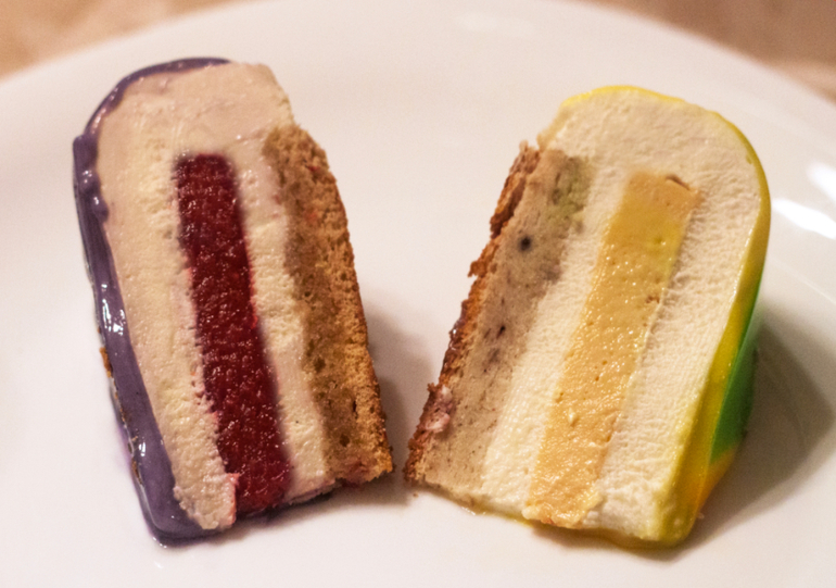 Евродесерты (муссовые торты и пирожные)Решила я, наконец, освоить и эту область) С украшением пока особо не заморачивалась, слепила из того, что было)) Тортики делала маме на др. Под катом второй муссовик и разрезы. В начинках: ванильный мусс на белом шоколаде, брусничное конфи, медовый бисквит и лимонно-лаймовый мусс, кремю манго-маракуйя, банановый бисквит. Все по рецептам Эндишефа.