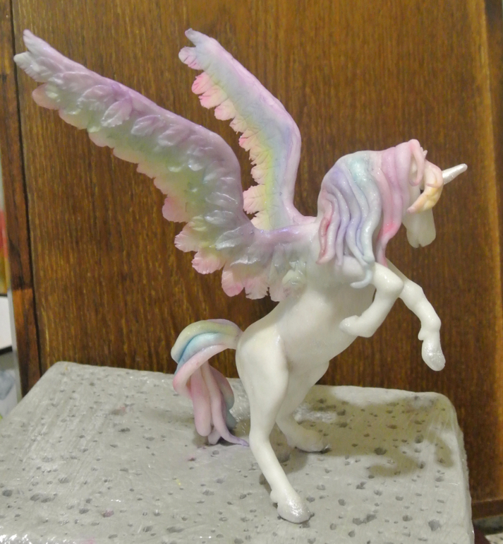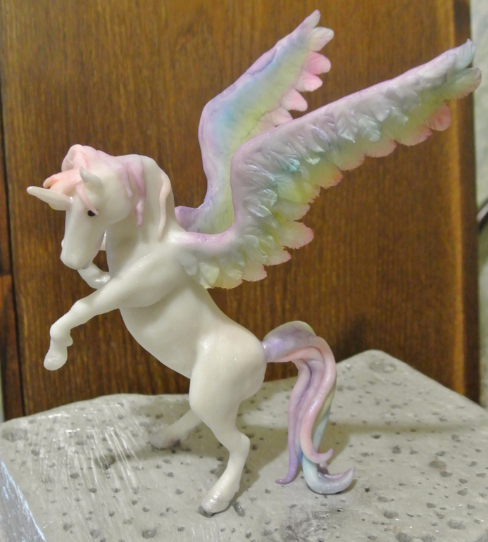 Поэтому я не могла не сделать на память фото пегаса-единорога без цветных гривы и крыльев. Потом плакала, но красила))).
