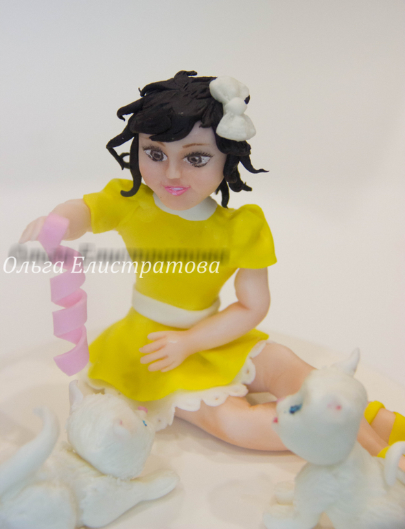 Торты детскиеДобрая история: заказали торт в подарок малышке на день рождения от бабушки из Воркуты)) Очень здорово было привезти торт ничего не подозревающим родственникам))) И, особенно ценно-разрешили делать на свое усмотрение дизайн) Поэтому получилась милая девочка с кошками (именинница любит играть со своими двумя любимицами)