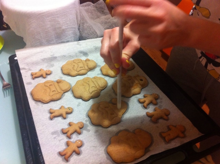 Выпечено и раскрашено 80 больших и 50 маленьких пряников (ночь перед ярмаркой).