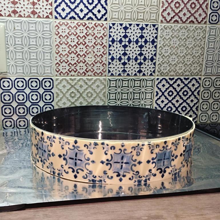 Ну и доказательство моей любви к веселой плиточке. Рабочее фото в ночи, как водится.