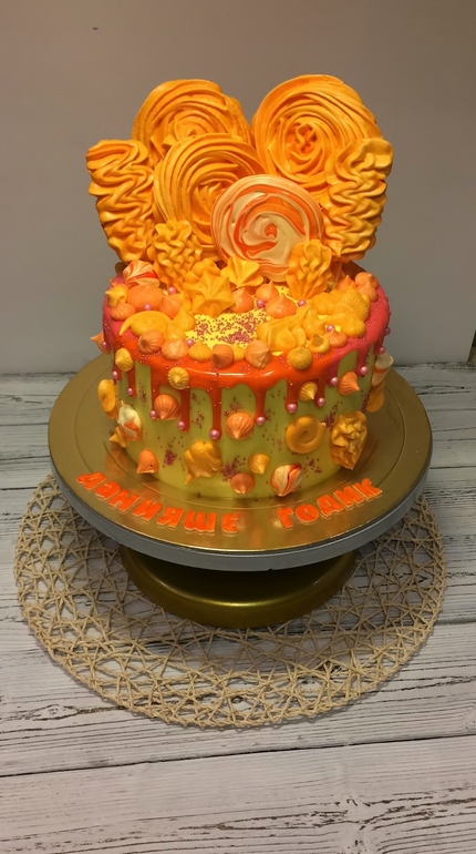 Основные цвета тут оранжевый и желтый. Цветная глазурь двух цветов - оранжевая и коралловая (вот этого цвета совсем не видно на фото)
