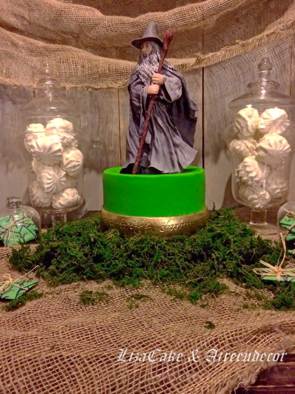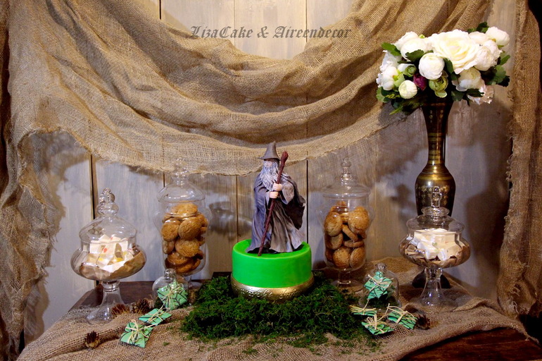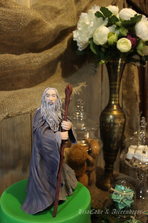 Надпись на кольце сразила))) А вообще я представляла этого гендальфа в 22 см на огромном торте, может, двухъярусном! А он так гармонично встал на небольшой тортик)))) Красивые фото, Лиз, очень со вкусом сделано!