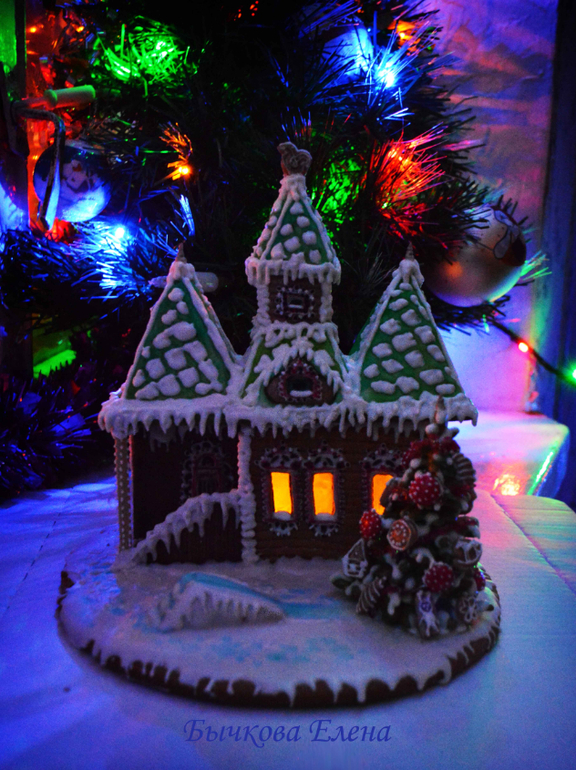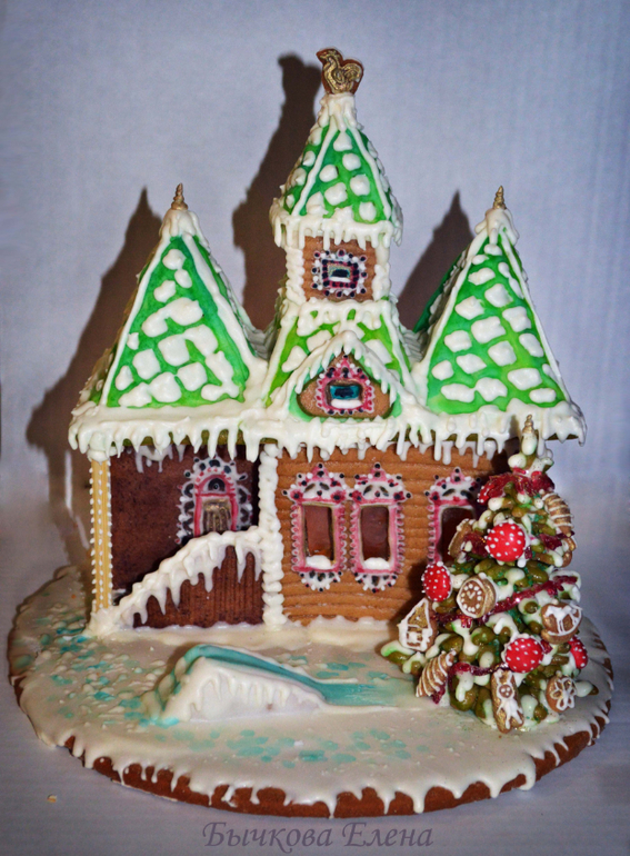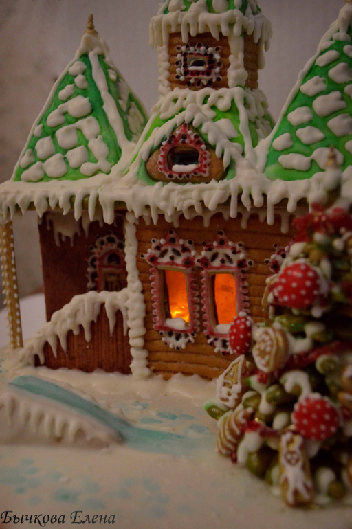 Но, думаю, назад пути нет))) Хочу теремок и все тут) Домик сделан в спешке за 2 дня, перед самым Новым годом! А съели его первого января :) Пряники медовые! высота композиции с подложкой - 23см. Всемером умяли за одно чаепитие)))