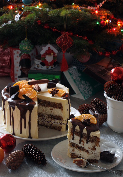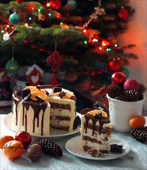 Инна, с прошедшими и наступающими праздниками! У тебя как всегда торт-красавец новогодний-новогодний!! У меня последние заказанные торты все были медовыми, моим тоже захотелось, пришлось с собой во Владимир везти, т.к. отмечали там))) карамельный медовый с черносливом и грецкими орехами