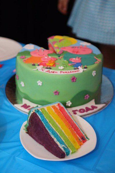 Торты с аппликациейРадужный торт внутри (вот хотят, цветной рот не пугает))) Под катом фото от заказчиков, с праздника)