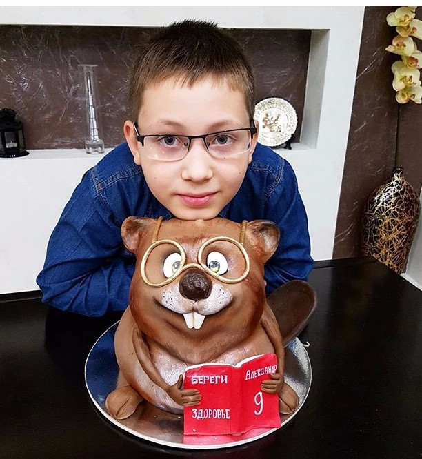 Торты 3ДВообще я назвала его умным бобром) Ребятенок-именинник, которому предназначался торт - умница - разумница, любит книжки, а еще он ручку сломал накануне, потому пожелание на книге - в тему) 4 кг под катом - фото именинника с тортом