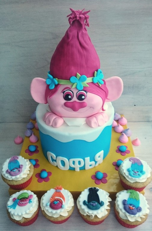 Торты детскиеТорт, капкейки и безешки. Давно хотела троллей сделать) торт шоколадный с шоколадным муссом, вишней и безе, голова розочки - тортик красный бархат