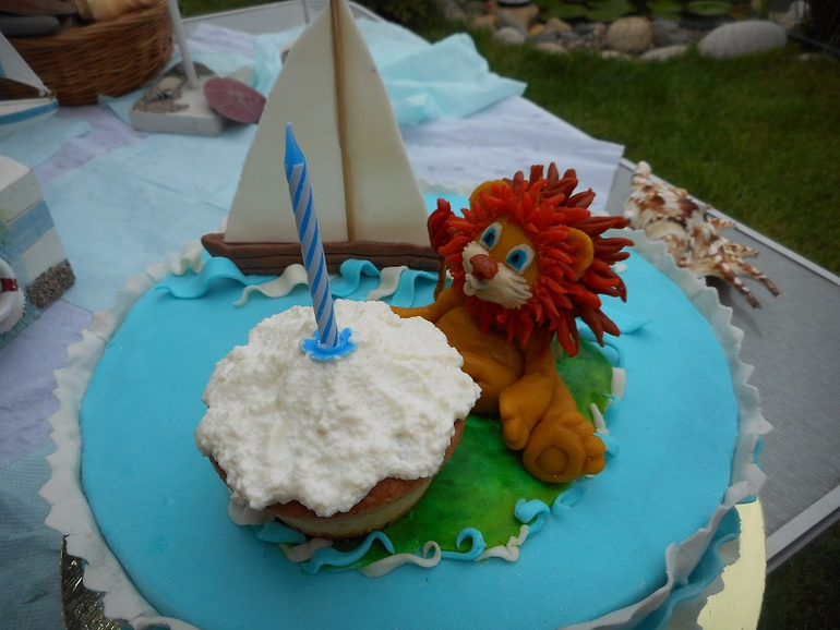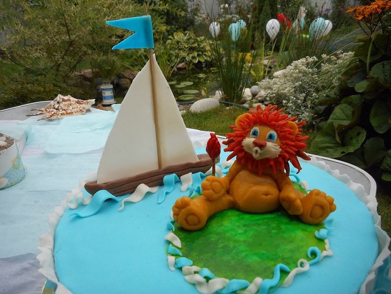 Торт для моего малыша, сыночка моего любимого, на годик) Он по гороскопу лев, поэтому львенок, а морская тема навеяна поездкой на море, вернулись за 3 дня до ДР)))