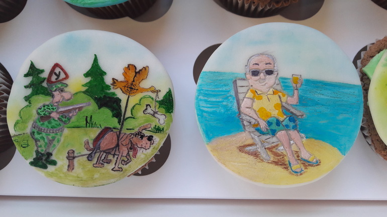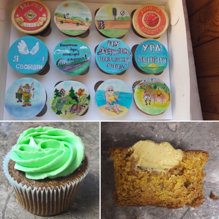 Капкейки и КейкпопсыШоколадные с ванильным кремом и морковные с карамельным кремом и домашней карамелью, кремчиз шапки... Дочь решила поддержать папу, которого отправили на пенсию)