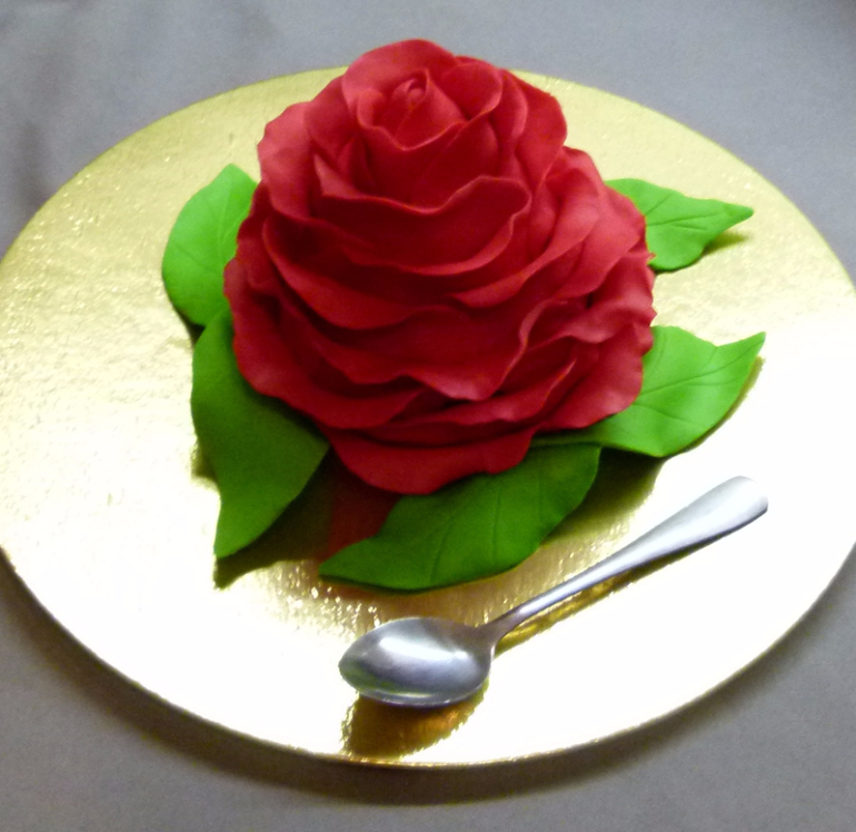 в роже масса "картошка" вес цветка 900 гр . на фото чайная ложка . но эту же розу можно сделать как карету из бисквита , маслянного крема и варенья . вес кареты 1200 гр
