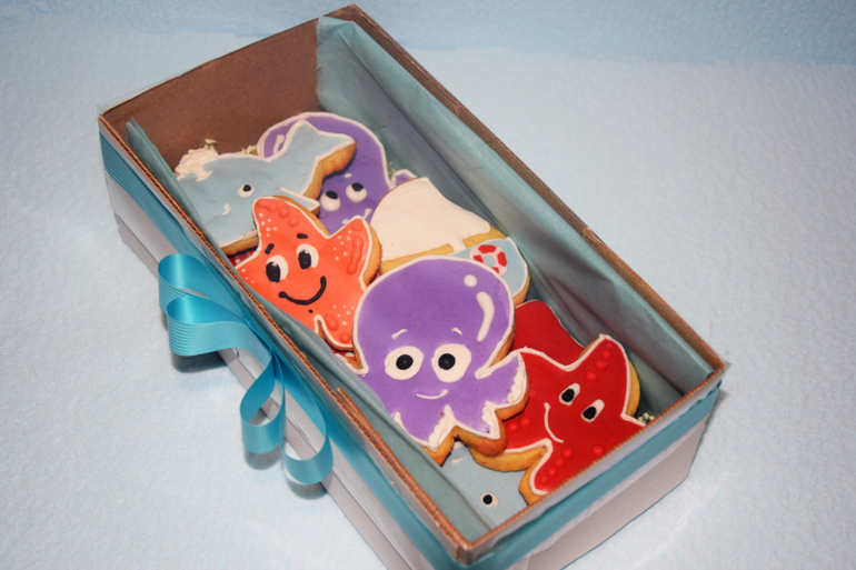 Капкейки и КейкпопсыКапкейки в морской тематике - нежные ванильные с кофейно-шоколадным кремом. Был еще торт и песочные печенья с глазурью в этой же теме. Кстати, печенья по рецепту Энди потрясающе вкусные! И лучше их кушать без глазури)).