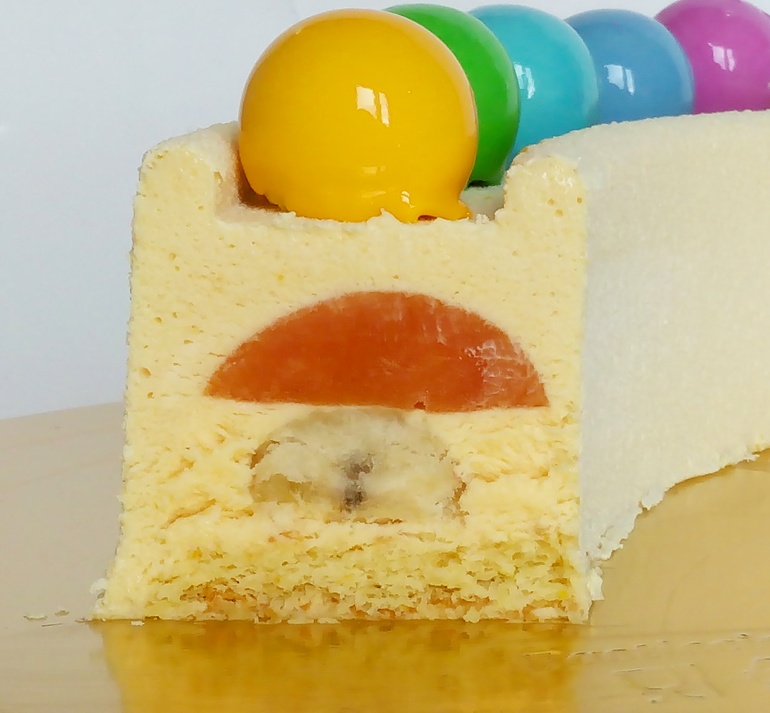 Муссовый "Мультифрукт": апельсиновый бисквит на миндальной муке, карамелизированный банан в пломбирном креме, кули красный апельсин, персиковый мусс. Под кВт сладкие наборы в тему праздника.
