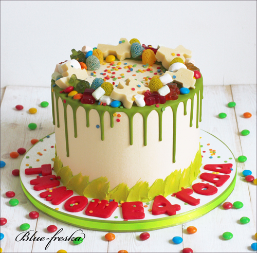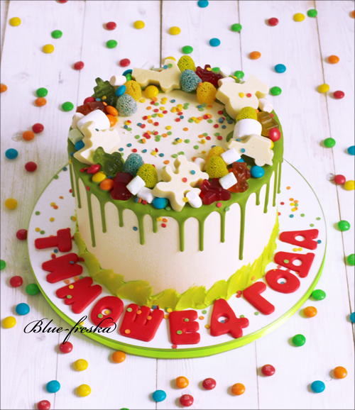 "сто лет" не была на СП...зашла и сразу такая красота радует!!! Так ярко, позитивно, очень красивый тортик!!! Твои шедевры всегда на высоте!!!