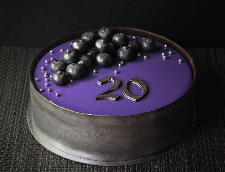 Евродесерты (муссовые торты и пирожные)Вот такой торт получился на 20-летие молодого человека. На фотке вообще не то. Цвет странный. Но, как мы знаем, фиолетовый на фото не получается почему-то)
