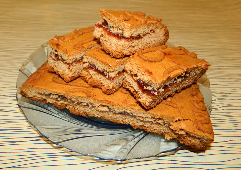 Проба пераПопробовала новый рецепт тульского пряничка, спасибо Кристина! Внутри мягкий, медовый, единственное, надо приспособиться под размер регулировать время выпечки. Свой чуть передержала, корочка толстовата получилась. И фотка целого не сохранилась увы... Внутри сливовый джем, домашний. Размер 25х15см