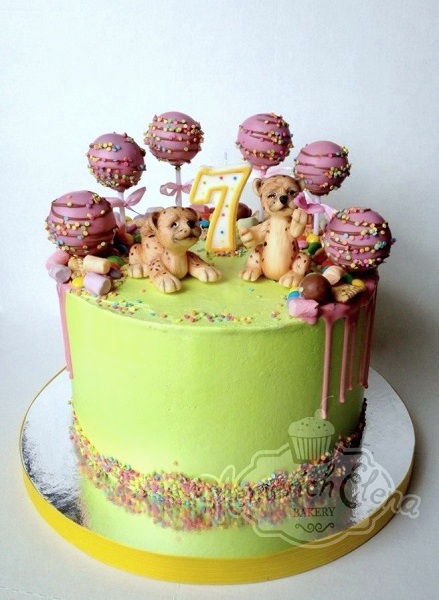 Прелесть невероятная ! И очень красивый цвет попсов и внизу посыпка у торта
