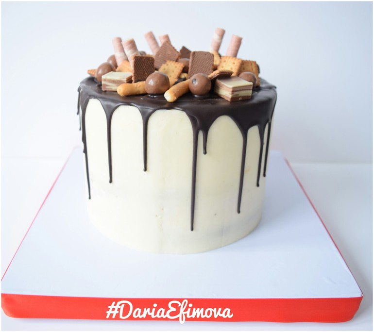 Делала впервые кремовый торт, все же для меня лучше мастичного торта ничего нет)) делала для знакомой... ну и сколько раз все обсуждали, что нельзя со знакомыми дело иметь... воообщем тепрь пристроить бы его..