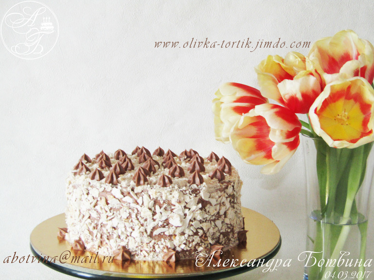 Украшение тортов кремом,шоколадом, фруктами"Киевский" с орешками кешью.