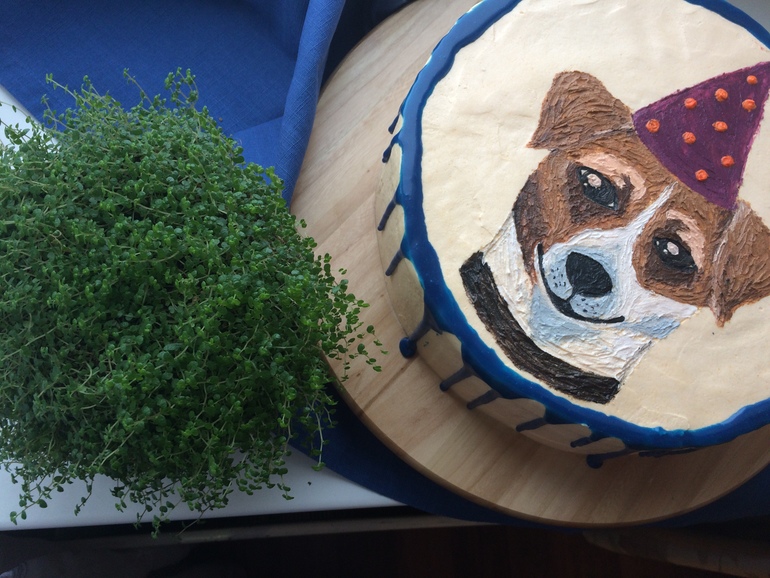 Мне в принципе нравится. Но он хорошо смотрится только с одного ракурса) Я люблю, когда рисунок по боку торта, а сверху есть что-то, что сочетается по цвету и стилю.
