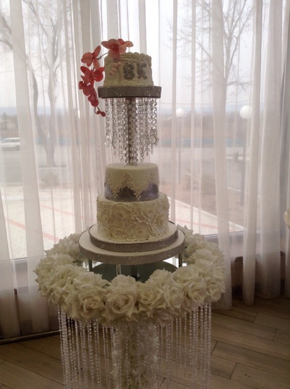 Спасибо!Нет.это столик так декорирован.Когда я увидела его.удивилась.будто декоратор знал.каким будет торт.Розы на столике гармонировали с рюшами на нижнем ярусе.а хрусталики такие же.как на этажерке