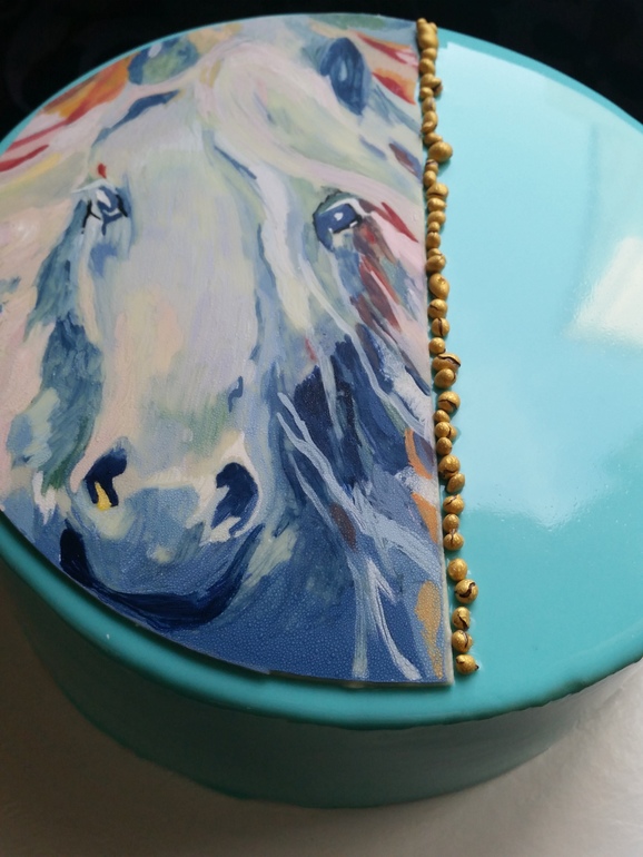 Евродесерты (муссовые торты и пирожные)Начала рисовать на шоколаде и вот что получилось. Муссовый тортик, зеркальная глазурь, медовый бисквит, конфи манго-маракуя, ванильный мусс.