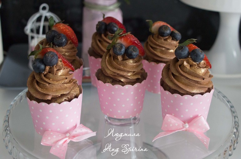 Капкейки и КейкпопсыШоколадные капкейки, с шоколадной начинкой и шоколадным кремом.... сплошной шоколад)