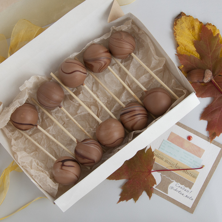 Спасибо! Я тоже делаю с маслом раст. Мне кажется глазурь получается более плотной, чем со сливками. Но вот тоже стоя отправляла. А укладывать боюсь: вдруг шоколад подтает и попсики вид потеряют.