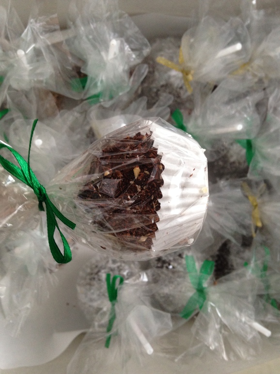 Я каждый кейкпопс упаковываю в индивидуальный пакетик, завязываю ленточкой и просто потом из складываю в коробку. Очень удобно )