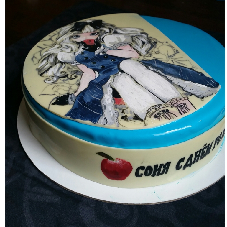 Евродесерты (муссовые торты и пирожные)Продолжаю рисовать на шоколаде. Нравится мне ооочень)) внутри конфи клубника, конфи личи, кокосовый мусс, клубничный дакуаз.