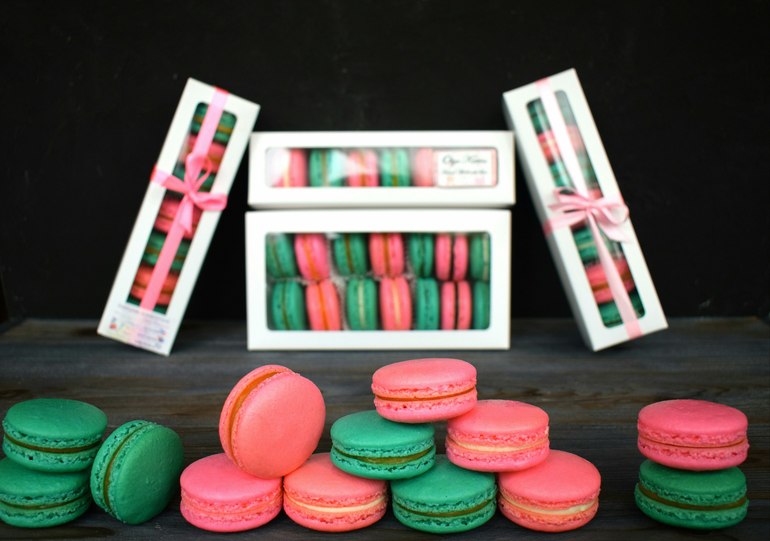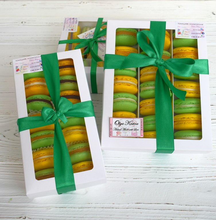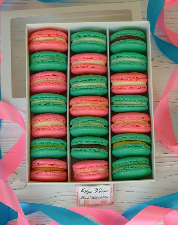 Макарошки с разными начинками: фисташка, лимоный курд, домашняя соленая карамель, шоколад, крем-чиз, мандариновое кули +шоколад. 🎉