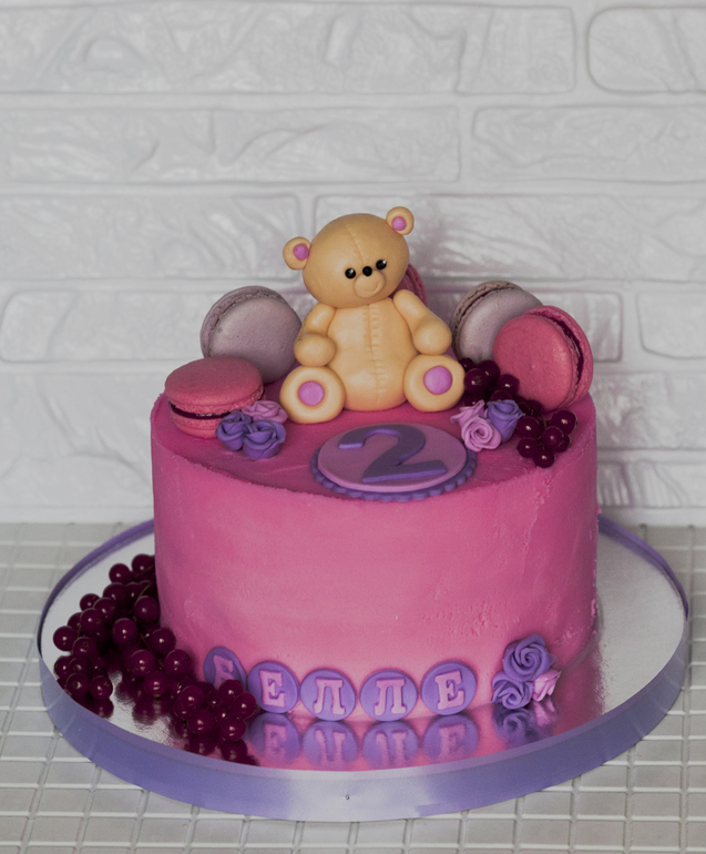 Писательский талант прошел мимо. Поэтому просто торт, кремовый, с ягодами, с макаронс, с мишкой из мастики.