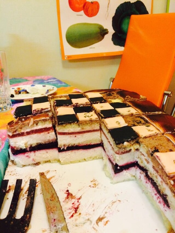 Огромное спасибище!! А выше вон нацарапала ;) конфи охренительные получились: у меня домашние ягоды (в черносмородинового еще домашняя голубика) сортовые ;) мои парни из обрезков только его и выковыривали, остальным уже дома наелись ;)) сглупила и не положила на конфи нижнее мусс - боялась, не хватит его на второй слой, а так нежнее бы было