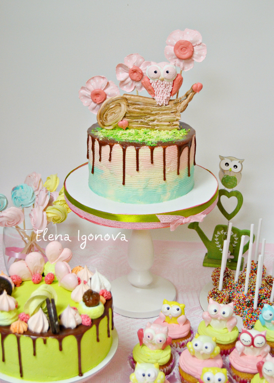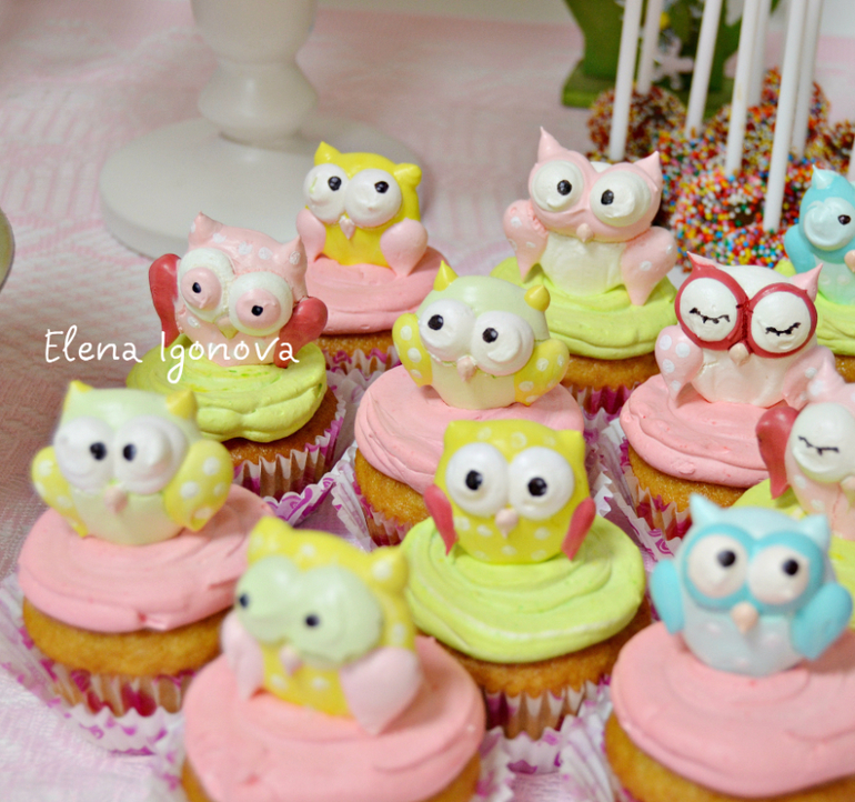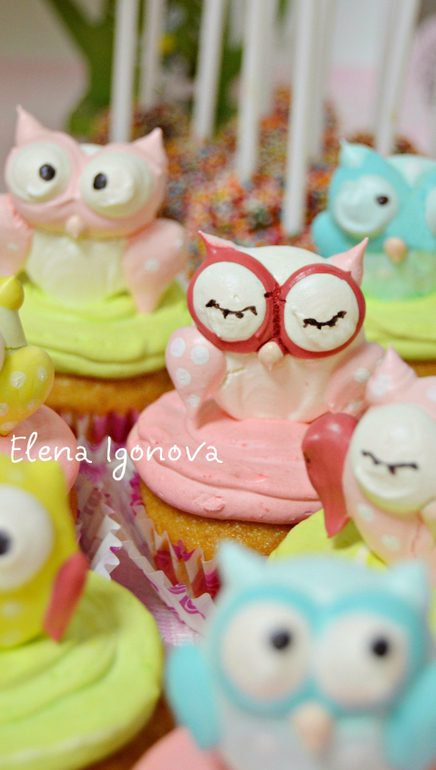 Прикольно смотрятся совята, а цветы из крема не представляю как они держатся))