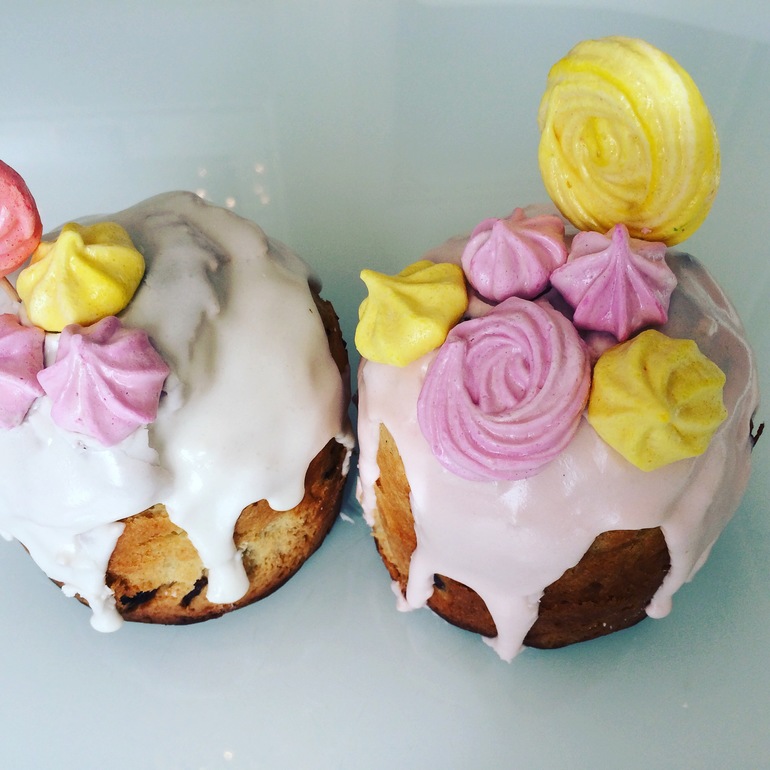 куличики , нежнейшее, воздушное тесто, начинка разная есть цукаты, изюм и орешки , оформление тоже разное безешками это такой детский вариант и посылочкой (классический ).кому интересно пишите в ЛС.