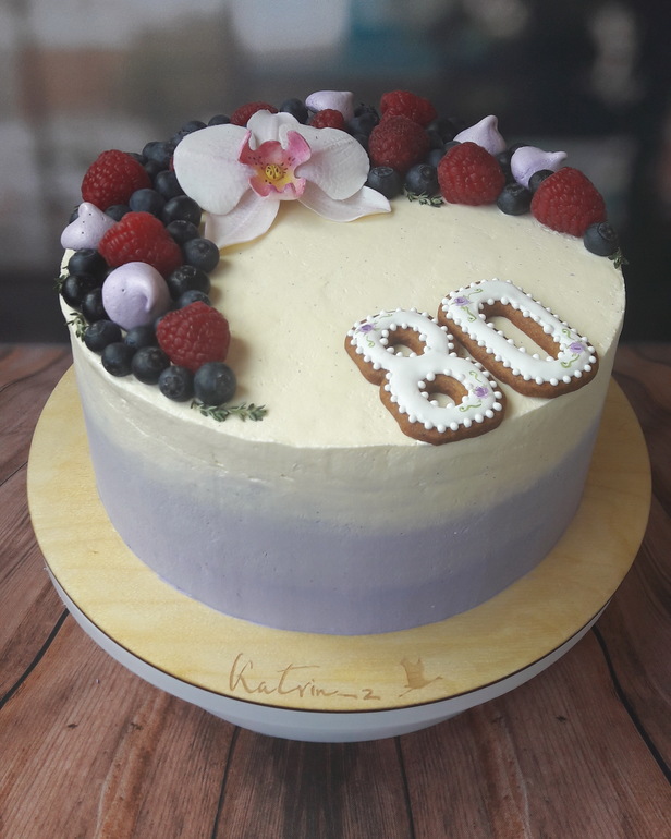 Торт на 80-летие с ягодами и сахарной орхидеей